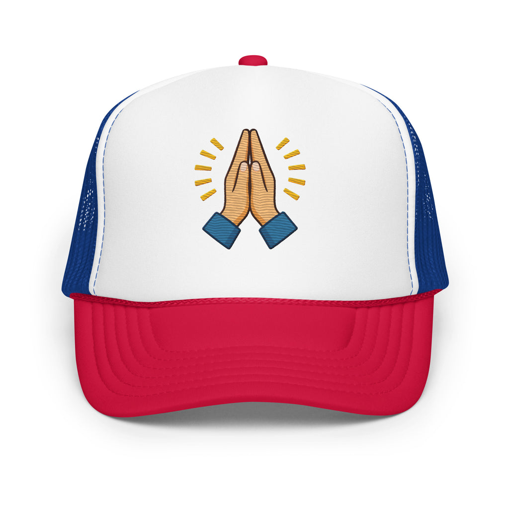 Stand out from the crowd with this Praying Hands foam trucker hat! This head accessory is made with high-quality polyester and foam that guarantees a premium look and feel. The foam trucker hat has an adjustable snap that ensures a comfortable fit, and the mesh back provides great breathability. The matching color braid gives the hat an extra oomph. Style it with your favorite outfit any time of the day.